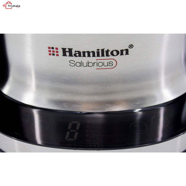 محصول پیشرو یک آبمیوه گیر تک کاره از شرکت همیلتون مونتاژ چین است. برند همیلتون یک کمپانی آمریکایی است. که در زمینه لوازم برقی خانه و آشپزخانه نیز فعال می باشد. کیفیت محصولات شرکت hamilton به مراتب بالاتر از سایر برند های لوازم خانگی است.