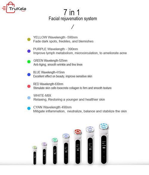 ویژگی ها و مزایای رنگ های ماساژور کره ای ار اف EMS ال ای دی 7 نور