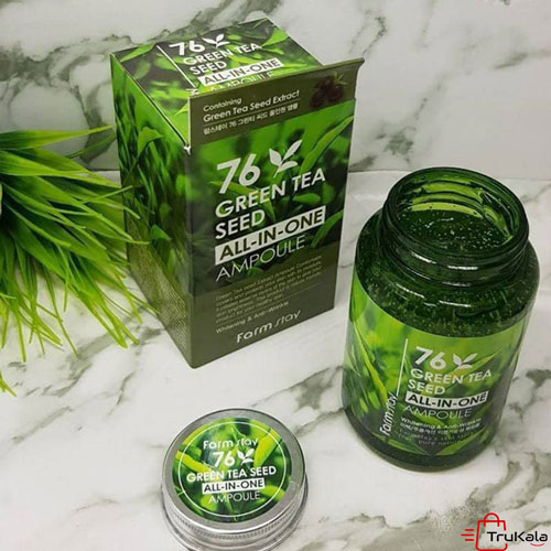 ویژگی های آمپول ضد پیری و روشن کننده چای سبز فارم استی