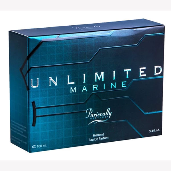 ادوپرفیوم مردانه پاریس ولی مدل Unlimited Marine محصول برند ایرانی پاریس ولی (Paris Vally) می باشد. که رایحهای با طبع شیرین و خنک دارد و بر اساس اسانس اورجینال عطر مدل Bleu de از برند مشهور شنل (Chanel) است. این اسانس برای استفاده روزانـه منـاسب است و بـرای محافل دوستـانـه کـاربرد بیشتری دارد.