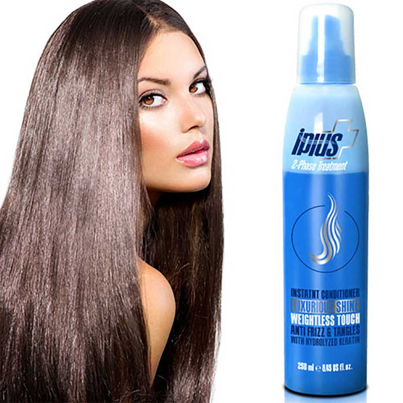 اسپری نرم کننده دو فاز ای پلاس (Iplus) با 250 میلیلیتر حجمی که دارد در محفظهای پلاستیکی قرار داده شده که بهصورت اسپری است و بسیار آسان روی موها اسپری میشود. پس از استفاده از اسپری دوفاز آیپلاس نیازی به آبکشی موها نیست.