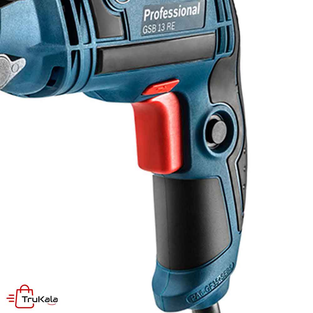 دریل چکشی بوش مدل GSB 13 RE ساخته شده و تولید شده توسط شرکت بوش (Bosch) می باشد. این دریل از نوع ضربه ای می باشد. اگر برای انجام کارهای خانگی به خرید دریل نیاز دارید، بهتر است دریلی ساده انتخاب کنید. اما برای سوراخ کاری مصالح و دیوارهای ساختمان بهتر است دریلی که تهیه می کنید، از نوع چکشی باشد. این دریل دارای موتور 600 واتی می باشد. این موتور قدرتمند این قابلیت را دارد که در یک دقیقه 2800 بار در حالت آزاد گردش داشته باشد. این سرعت چرخش اندازه ای بسیار مناسب برای یک دریل خانگی محسوب می شود. ویژگی مهم دیگر این دستگاه قابلیت چکشی بودن آن است. یعنی برای سوراخ کردن سطوح، علاوه بر نیرویی که از طریق چرخش به سطح وارد می کند، به صورت عمودی هم ضربه می زند و این امر به راحت تر سوراخ شدن سطح منجر می شود. این ویژگی برای سطوح سخت ساختمانی مثل سیمان و بتن کاربرد دارد.