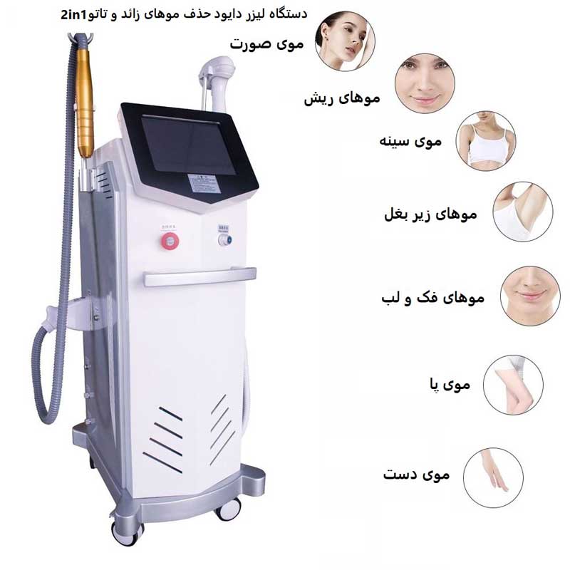 دستگاه لیزر حذف موهای زائد و تاتو 2in1 دایود Diode