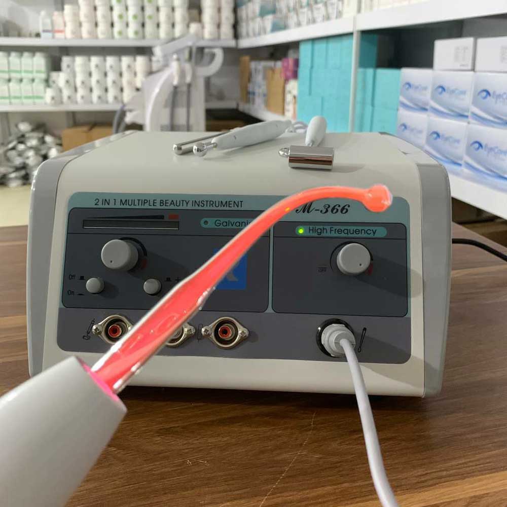 دستگاه هیدرودرمی گالوانیک m366 شامل 2 هندپیس های فرکانسی و گالوانیک میباشد. عملکرد های فرکانسی با استفاده از الکترودهای ماورا بنفش ناحیه درمان را عقیم کرده تا باکتریهایی را که باعث گسترش عفونت شده را از بین برده و روند بهبودی پوست را افزایش میدهد. کارکرد دستگاه هیدرودرمی گالوانیک m366 ساده بوده و نتیجه درمان فوری است. دستگاه هیدرودرمی از جدیدترین و بهترین روش درمانی پوست بوده که خشکی پوست را رفع می کند. وظیفه این دستگاه آبرسانی و مرطوب کردن پوست بوده، منافذ باز پوست را بسته و موجب شده که اکسیژن لازم به لایه های درونی پوست برسد.