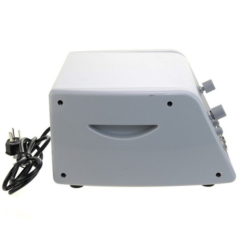 در قسمت چپ این دستگاه، هیدرودرمی یا همان هایفرکانسی با 3 کارکرد متفاوت وجود دارد. این دستگاه از قدرت بالایی برخوردار بوده که بدون هیچگونه ایجاد خطا و نقص، پوست صورت را در بهترین حالت ممکن پاک سازی می کند. دستگاه هایفرکانسی، قابلیت استفاده با ژل مخصوص را دارد. هنگام استفاده از این دستگاه با ژل مخصوص، مواد پر خاصیت ژل به درون پوست نفوذ می کند و باعث جوانسازی و کاهش چین و چروک های صورت می شود. سری های هایفرکانسی، شیشه ای بوده و رنگ آن در هنگام کار قرمز می شود. که همین امر تاثیرات فوق العاده ای در جوانسازی و پاکسازی پوست دارد. شما می توانید به دلخواه خودتان سرعت آن را زیاد یا کم تنظیم کنید.