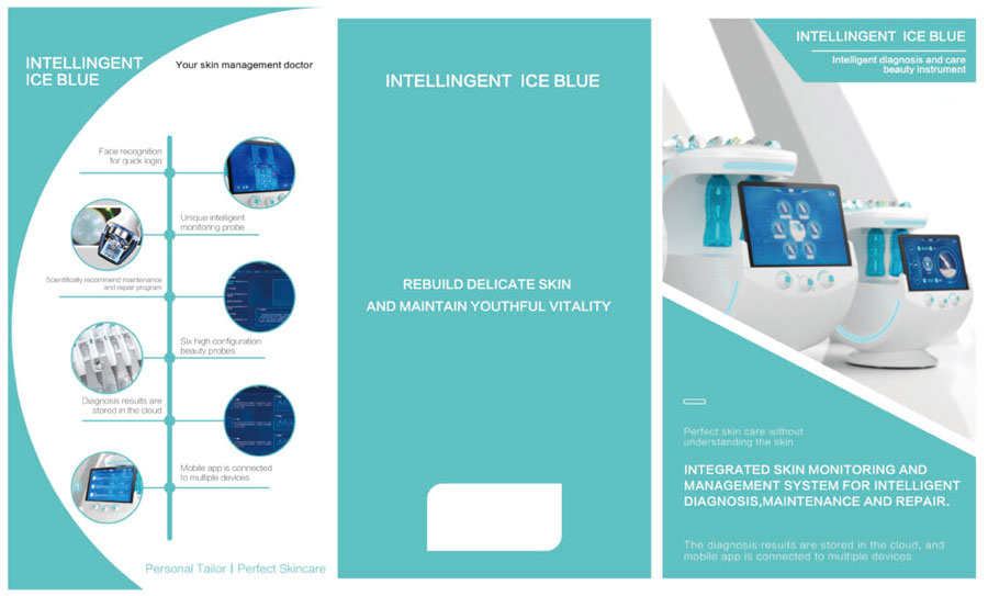 • مکانیسم عمل : اصل مهم و اساسی دستگاه هیدروفیشیال آیس بلو اسمارت نمونه برداری در سه طیف است. مدیریت هوشمند پوست AI، فشار برای تولید محصولات هوشمند، طرح منطبق بر سلائق مشتری محصولات زیبایی. شش عملکرد مراقبتی از پوست : ’’ التراسونیک‘‘، ’’بابل‘‘، ’’نانواتمیزیشن‘‘، ’’موج التراسونیک‘‘، ’’فرکانس رادیویی طلا‘‘، ’’ترمیم آیس‘‘.