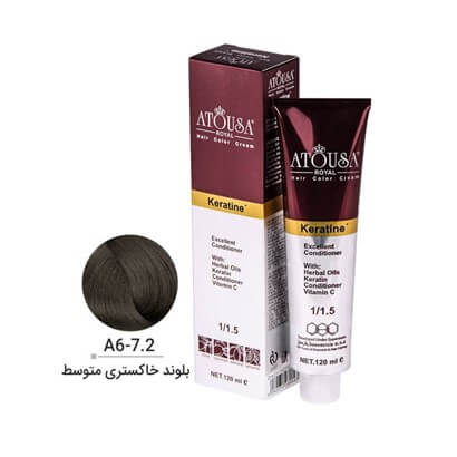 رنگ موی آتوسا رویال بلوند خاکستری متوسط حاوی کراتین و روغن های کیاهی و نرم کننده و ویتامین C می باشد.