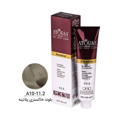 رنگ موی آتوسا رویال بلوند خاکستری پلاتینه حاوی کراتین و روغن های کیاهی و نرم کننده و ویتامین C می باشد.