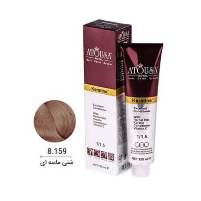 رنگ موی آتوسا رویال شنی ماسه ای حاوی کراتین و روغن های کیاهی و نرم کننده و ویتامین C می باشد.