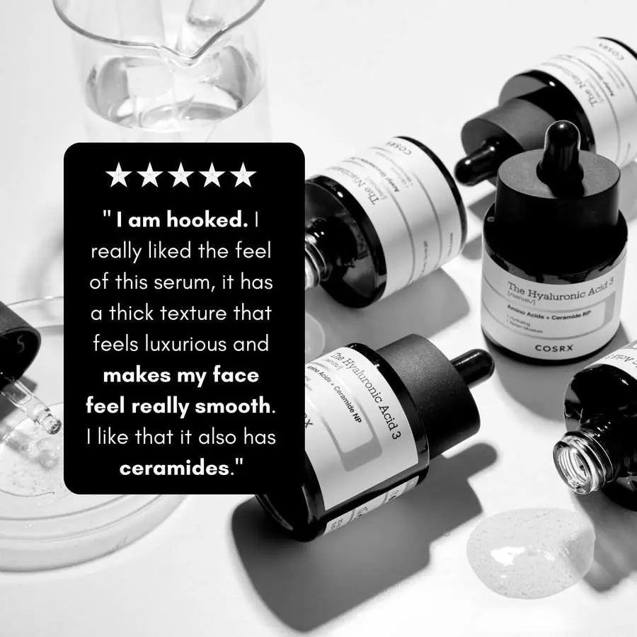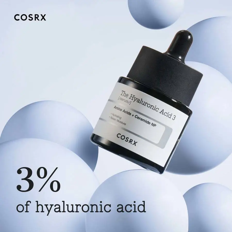 هیالورونیک اسید در سرم آبرسان هیالورونیک اسید ۳ کوزارکس با وزن مولکولی کمتری طراحی شده است تا به عمق پوست نفوذ کند و ماندگاری بیشتری داشته باشد.