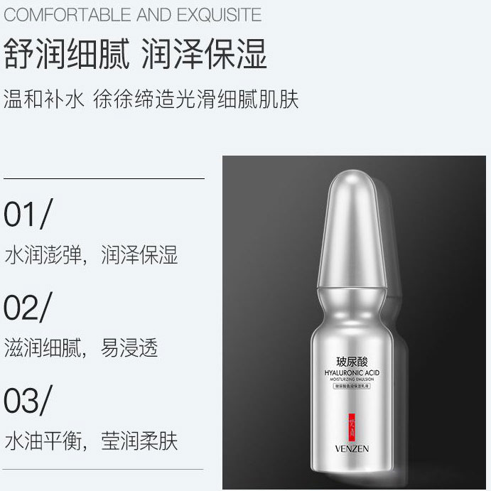به بهبود زخم کمک می کند : سرم آمپولی Venzen حاوی اسید هیالورونیک به پوست کمک کرده تا رطوبت خود را حفظ، و به روند بازسازی بافت در ترمیم زخم ها کمک کند. استفاده از اسید هیالورونیک برای بهبود زخم ها و تسکین التهاب و ترمیم بافت ها کمک میکند.