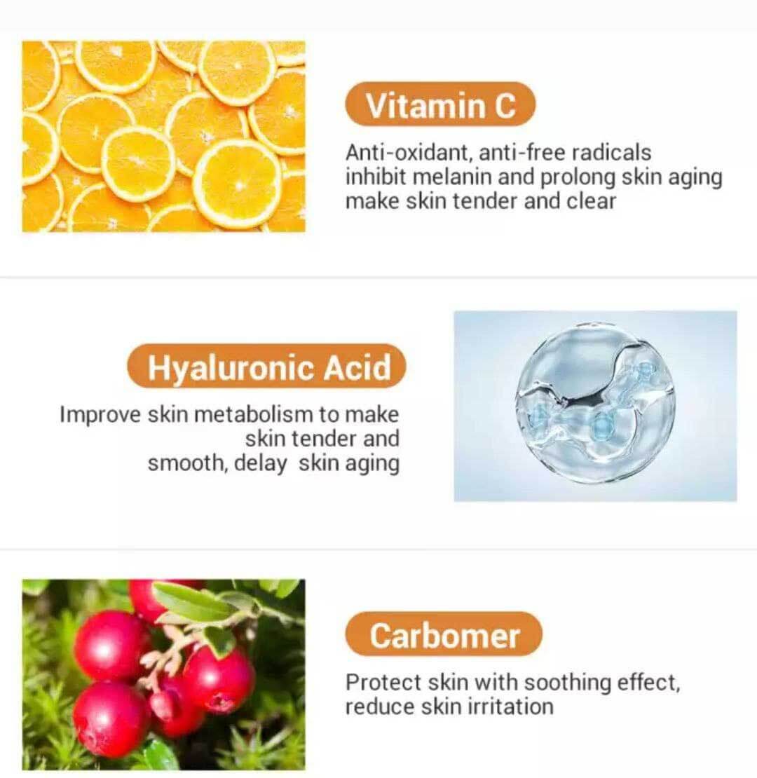 - حاوی ویتامین C ، هیالورونیک اسید و پروتئین