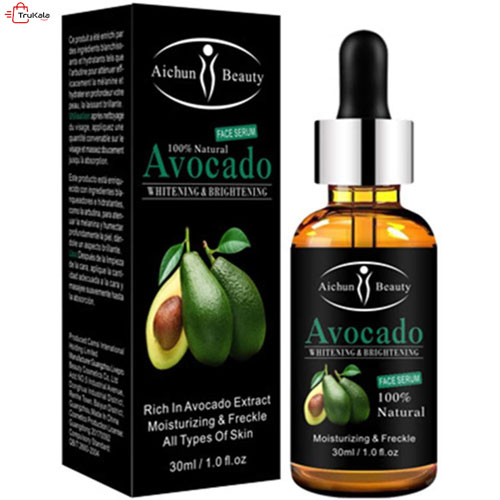 آووکادو سرشار از چربی های مفید و رادیکال های آزاد می باشد که برای سیستم ایمنی بدن و همچنین پوست بسیار مفید و حائز اهمیت زیادی می باشد. سرم صورت ایچون بیوتی حاوی عصاره خالص آووکادو بوده که تقویت کننده و مستحکم کننده سلول های ضعیف و آسیب دیده پوستی می باشد این سرم روشن کننده و درخشان کننده پوست های تیره و سبزه بوده و نواقص پوستی مانند لک، جای جوش، کک و مک و آکنه را کاهش می دهد و باعث ایجاد پوستی سفید و درخشان، نرم و مرطوب، صاف و عاری از مشکلات پوستی می شود.