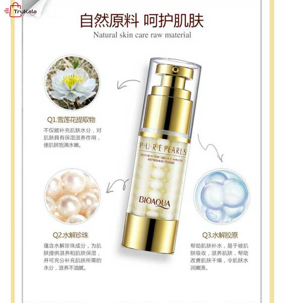 سرم ضد چروک مروارید بیواکوا به دلیل بافتی که دارد خیلی سریع در پوست شما جذب شده و لطافت را به پوست شما میبخشد.با استفاده از عصاره مروارید لایه برداری میکند و روغن اضافه پوست و گرد و غبار و آلودگی که روی پوست شما در طول روز مینشیند را به خوبی پاک میکند.جالب است بدانید این کرم قاتل سیاهی های دور چشم شماست و میتواند آنها را خیلی سریع از بین ببرد.