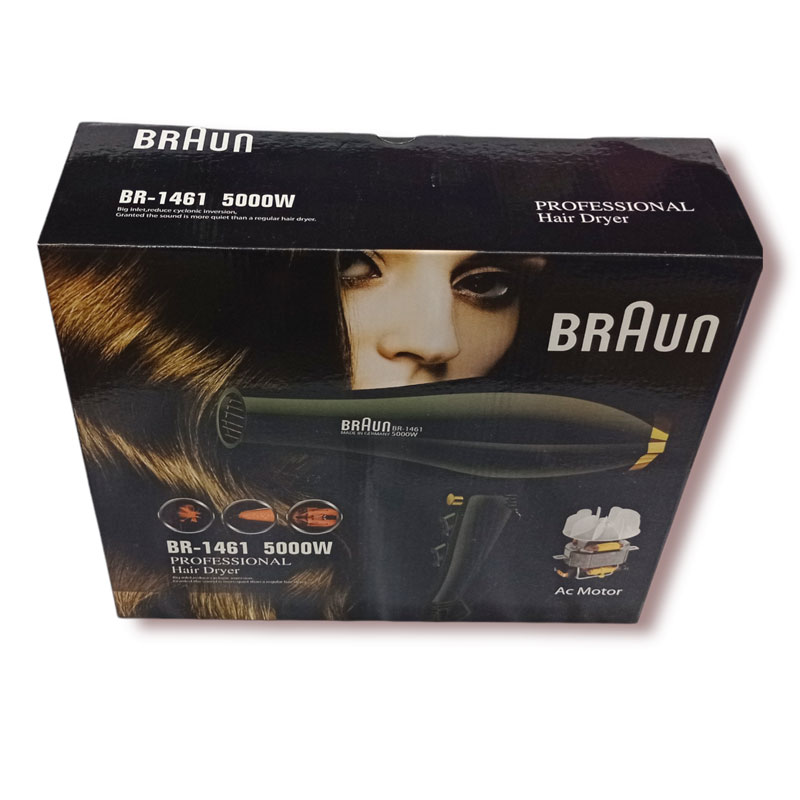سشوار حرفه ای براون 1461 ساخت شرکت براون و کشور آلمان بوده که موتور آن از نوع AC میباشد و دارای قدرت بسیار بالای است. در ضمن از این سشوار می توان در آرایشگاه ها و استفاده شخصی استفاده کرد. توان این سشوار 5000 وات بوده که جزو سشوار های قدرتمند شرکت براون است. یکی از ویژگی های سشوار براون مجهز بودن آن به فیلتر دائمی قابل شستشو میباشد. که می توان پس از مدتی استفاده از سشوار فیلتر را خارج نموده و شست.