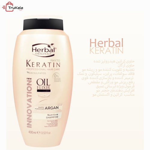شامپو ترمیم کننده کراتین هربال حاوی کراتین هیدرولیز شده ریز ملکولی فعال و روغن آرگان بوده است. و موهای صاف شده، فر شده و موهایی که با اکسیدان و ترکیبات آن آسیب دیده، سوخته و وز با نازک شده اند را تقویت، نرم، احیاء و درخشان می کند. پرو ویتامین B5 به شکلی عمیق به آبرسانی، تغذیه و تقویت مو پرداخته و تا مدت طولانی رطوبت موهارا حفظ مینماید. و منابع غنی از امگا 3 و ویتامین E فرموله شده موهای ضعیف و آسیب دیده را ترمیم، تقویت و تغذیه میکند. و به مو حالتی نرم و ابریشمی می بخشد.
