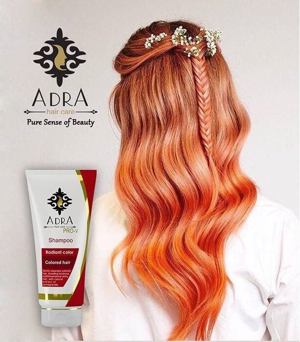 شامپو موهای رنگ شده آدرا حاوی عصاره انار به منظور تثبیت رنگ مو می باشد.