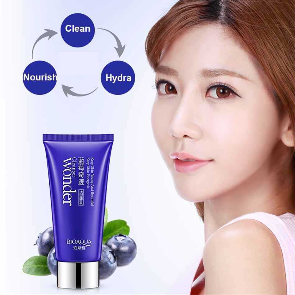 فوم شستشوی بلوبری بیوآکوا مناسب برای انواع پوست به ویژه پوست های لک دار و حساس بوده است. همچنین قادر است چربی اضافی پوست، آلودگی های سطحی و باقی مانده مواد آرایشی را از سطح پوست پاک كند. و با باز نمودن منافذ پوست و مهار تكثیر باكتری ها موجب بهبود جوش های صورت شود. ژل شستشوی و پاک کننده صورت بلوبری یک پاک کننده مناسب آلودگی هوا و سلول های مرده از سطح پوست می باشد. که با تامین رطوبت مورد نیاز پوست با محافظت از لایه هیدرولیپیدیک، با حفظ تعادل آب و چربی پوست آن را بازسازی می کند.
