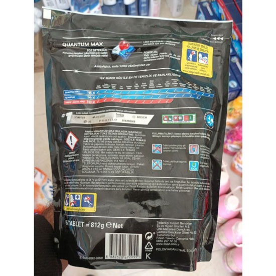 قرص فینیش کوانتوم مکس شامل ترکیب بی نظیری از توپ، ژل و پودر است. توپ قدرتمند آن خاصیت براق و درخشان کنندگی بی نظیر ظروف را دارد. ساختار ژلی قرص کوانتوم مکس فینیش چربی زدایی می کند و پودر آن انواع لکه های سخت و چسبیده غذا را از بین می برد. همچنین با فرمولاسیون قدرتمند و پیشرفته در اولین شستشو باعث تمیزی بی نقص ظروف می شود. قرص فینیش کوانتوم مکس حاوی ژل قدرتمندی بوده که به راحتی و در کمترین دماها نیز به راحتی در آب حل شده و چربی ها و سوختگی غذا را به آسانی و با یک بار شستشو از روی ظروف پاک می کند. به طوریکه هیچ اثری از آن ها باقی نمی ماند و در مصرف آب نیز حدود 56 لیتر صرفه جویی می شود.