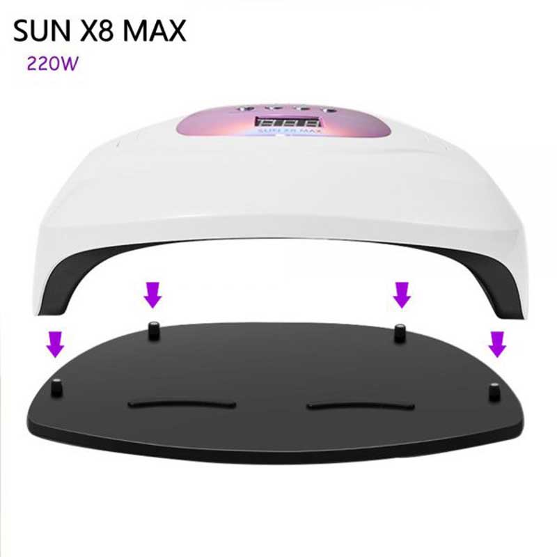 در جلوی دکمه های دستگاه لاک خشک کن یو وی سان ایکس 8 مکس یک صفحه نمایش بزرگ مشاهده میکنید که ثانیه شمار دستگاه است. سینی کف دستگاه به راحتی قابلیت جدا شدن دارد که این امر سبب میشود استفاده از دستگاه برای پا و تمیز کردن دستگاه برای شما راحت و آسان شود.