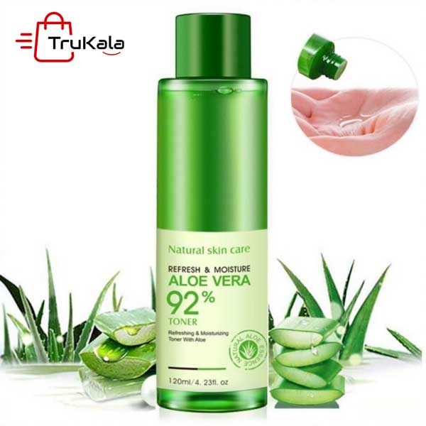 تونر پوست آلوئه ورا، مناسب برای همه نوع پوست است. تونر آلوئه ورا دارای جذب بالا و تقویت کننده قوی پوست تونر با قدرت پاک کنندگی بالا باقیمانده آرایش و مواد غیر بهداشتی را از پوست پاک می کند. با داشتن عصاره آلوئه ورا طبیعی رطوبت را در پوست حفظ می کند و پوست را شاداب و با طراوت می سازد.