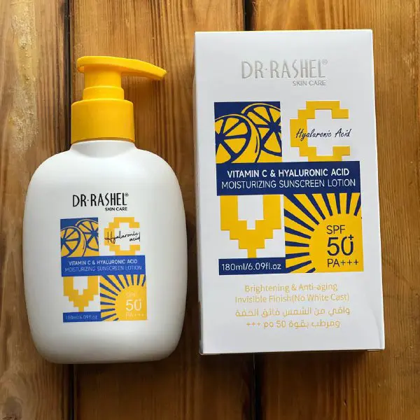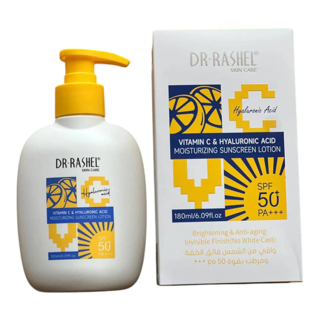 لوسیون ضد آفتاب صورت و بدن ویتامین سی و هیالورونیک اسید دکتر راشل SPF50