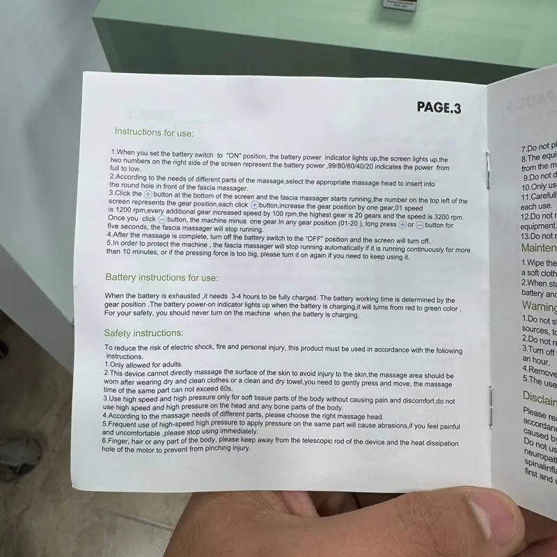 - قبل از استفاده از ماساژور دست یا پای خود را کمی در حالت کشیده قرار دهید.