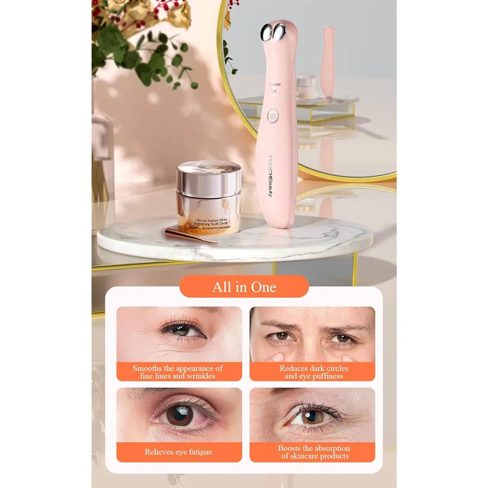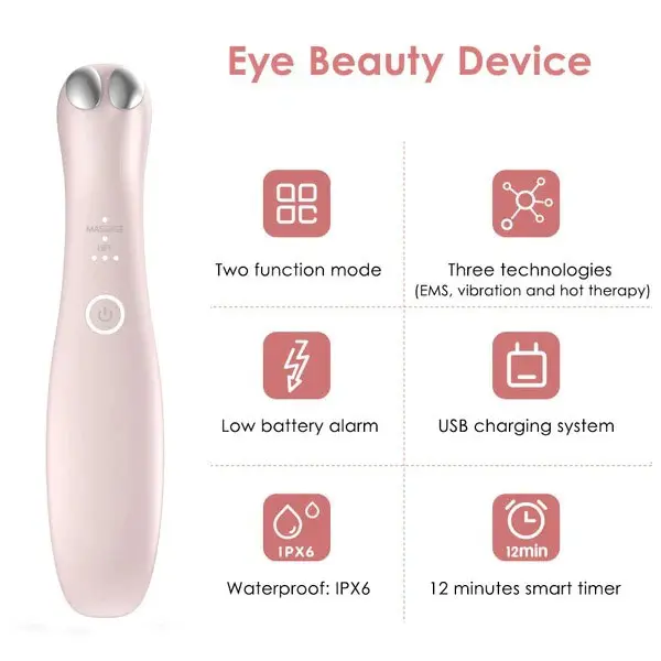 با استفاده از ماساژ لرزشی و حرارت ملایم این دستگاه به رفع تیرگی و پف دور چشم و همچنین کاهش خستگی چشم ها کمک میکند ماساژ ناحیه دور چشم میتواند تنش و فشار وارد بر عضلات این ناحیه را کاهش دهد و به شاداب شدن پوست کمک کند. همچنین دستگاه با تحریک ملایم جریان خون جذب محصولات مراقبتی مانند کرمهای دور چشم را افزایش میدهد.
