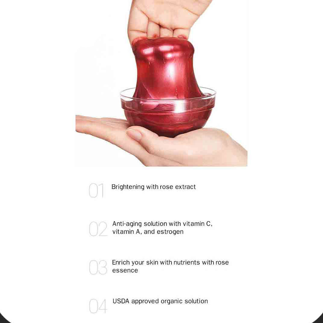 آبرسان و مرطوب کننده قوی مغذی پوست و نرم کننده سفید کننده و تنظیم چربی پوست تقویت بافت پوست و ترمیم منافذ باز پوست جوانسازی پوست و اورجینال شامل مایع و پودر حاوی عصاره گل رز |