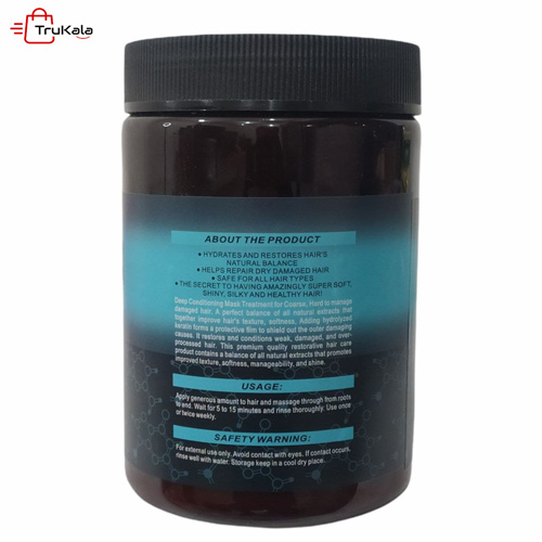 این ماسک مو  ترمیم کننده و احیا کننده بافت موهای آسیب دیده و کم پشت بوده که در استفاده صحیح و دراز مدت باعث درخشان شدن و شلاقی شدن مو ها شده و ماننده کراتینه کردن مو عمل کرده و شانه پذیری و حالت دهی مو ها را بسیار بهتر می کند این ماسک مو نرم کننده و صاف کننده مو های فر فری و مجعد بوده و با آبرسانی و هیدراته کردن ساقه و ریشه مو از شکننده بودن آن جلوگیری می کند.