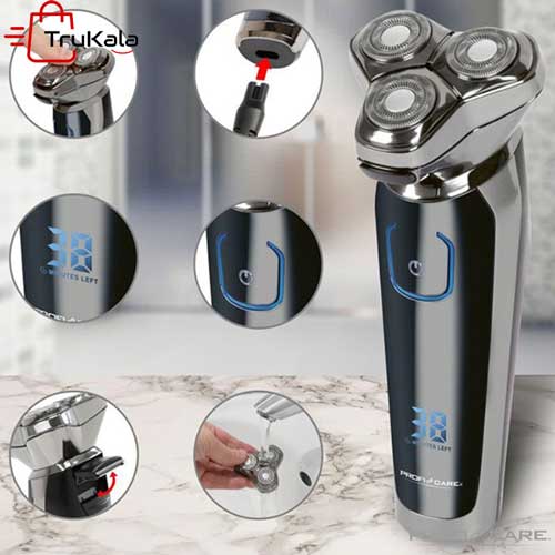- سری قابل جدا شدن برای شستشو و تمیز کردن آسان، تریمر برای برش مو های بلند، صفحه نمایش دیجیتالی جهت نمایش مدت زمان باقیمانده شارژدهی و قفل الکترونیکی برای حمل و نقل آسان در مسافرت ها از دیگر ویژگی های این ماشین اصلاح چرخشی پرافی کر می باشد.