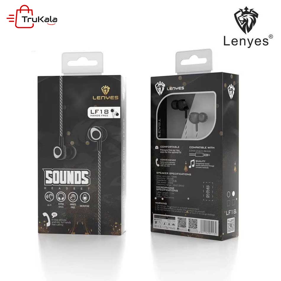 هندزفری لنیس مدل LF18 محصول شرکت لنیس (LENYES) یکی از با کیفیت ترین شرکت ها در ارائه محصولات لوازم جانبی است. طراحی جالب و منحصر به فرد این محصول باعث جذابیت آن شده است. طراحی هندزفری سبب شده است که سیم های بلندگوی آن مقاومت بهتر و ماندگاری بیشتری نسبت به بقیه هندزفری های داخل بازار داشته باشد. ظاهر بسیار کوچک هندزفری لنیس باعث می شود که به راحتی در داخل گوش جا گیرد. در داخل جعبه سایز های متفاوت برای گوش شما تعبیه شده است. بلندگو های 10 میلی متری آن با اندازه کوچک اما کیفیت بالا می تواند رضایت شما را بدست بیاورد.