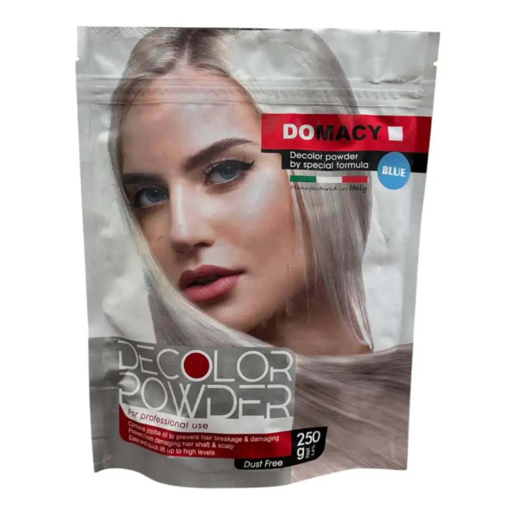 پودر دکلره آبی دوماسی کاملا ضد زردی و مناسب برای استفاده با کلاه مش است. موهای زیبا میتوانند جلوهای خاص و زیبا به چهره هر فرد ببخشد. رنگ مو نیز یکی از عوامل بسیار موثر در افزایش این زیبایی است. به طور کلی برای روشن کردن موهایتان تا ۴ درجه روشن تر از رنگ طبیعی آن باید از روش دکلره کردن مو استفاده کنید تا به اصطلاح موها را بی رنگ شوند. پس از بی رنگ شدن موها میتوانید رنگ دلخواهتان را استفاده کنید.