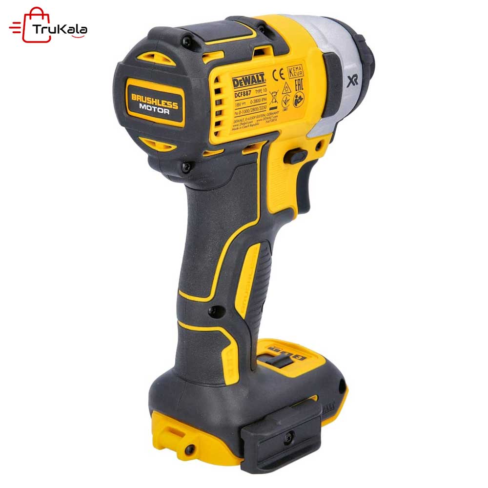 پیچ گوشتی ضربه ای شارژی دیوالت مدل DCF887 ساخت برند دیوالت (DeWalt) می باشد. این پیچ گوشتی دارای موتور پیشرفته براشلس است که باعث افزایش گشتاور و همچنین حفظ قدرت و کارایی عالی در طیف وسیعی از کاربردهای سبک تا سنگین می شود. موتور پرقدرت 18 ولتی از نسل توانایی تولید گشتاور تا 165 نیوتن متر را دارد. این موتور ها با ارائه بیشترین راندمان، افزایش کارایی، دوام و طول عمر دستگاه به دلیل به کارگیری تکنولوژی خیلی پر طرفدار به حساب می آیند. همچنین این پیچ گوشتی دارای چراغ LED حلقه ای سه عددی جهت ایجاد حداکثر روشنایی بر روی قطعه کار می باشد. این پیچ گوشتی دارای سیستم ابزار گیر با امکان تعویض سریع سری پیچ گوشتی نیز می باشد.