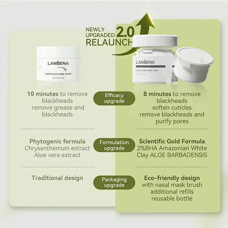 چسب بینی لانبنا، محصول کشور کره و دارای 60 عدد پد مخصوص می باشد. سری جدید چسب بینی لانبنا دارای 2% BHA یا بتاهیدروکسی اسید یا همان اسید سالیسیلیک، بوده و در عرض فقط 8 دقیقه تمام جوش های سر سیاه صورت برداشته شده و منافذ پوست به طور کامل پاکسازی می گردد. سالیسیلیک اسید منافذ باز را کوچک کرده، ترشح چربی پوست را تنظیم و از ایجاد جوش جدید چلوگیری می کند.