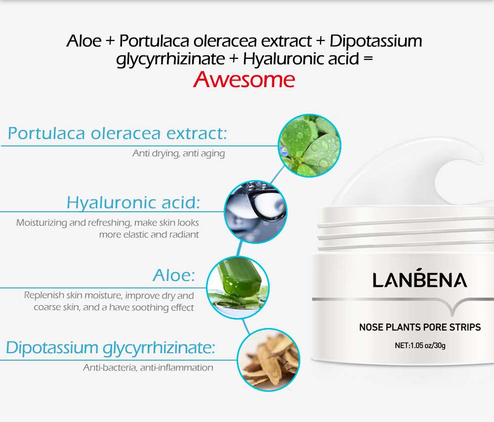 چسب بینی لانبنا علاوه بر اینکه به تمیز کردن و ضد جوش کردن پوست کمک میکند، همچنین به تغذیه و بهبود پوست کمک میکند. فرمولاسیون این محصول به گونهای طراحی شده است که میتواند منافذ باز پوست را به حداقل برساند و باعث افزایش سطح رطوبت و کاهش تولید چربیهای اضافه شود.