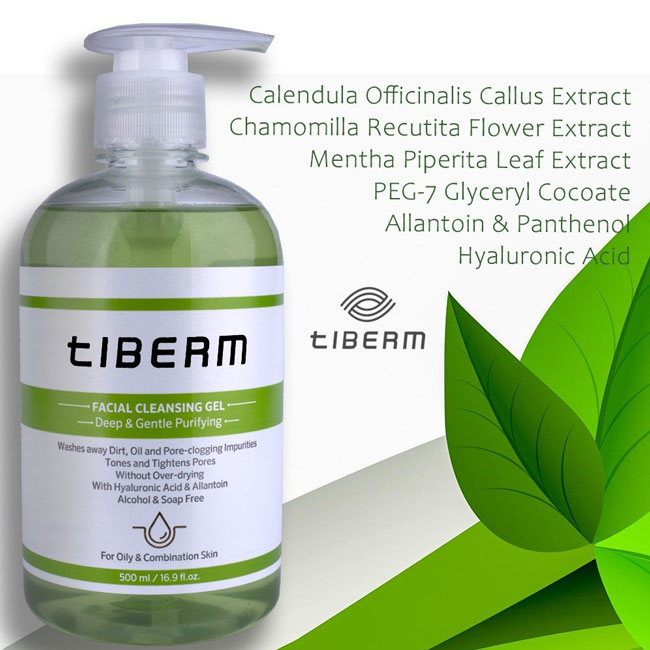 ژل شستشو پوست چرب و مختلط تیبرم ﺷﻮﯾﻨﺪه اي ﻏﯿﺮﺻﺎﺑﻮﻧﯽ و ﻓﺎﻗﺪ اﻟﮑﻞ بوده که ﺑﺎ ﻓﺮﻣﻮﻻﺳﯿﻮﻧﯽ ﻣﻼﯾﻢ، ﺿﻤﻦ ﭘﺎك ﮐﺮدن آﻟﻮدﮔﯿﻬﺎ، چربی پوست را کنترل و مانع ﭘﺮﺷﺪن ﻣﻨﺎﻓﺬ ﭘﻮﺳﺘﯽ ﺑﺎﺳﺒﻮم ﻣﯽ ﺷﻮد. ژل شستشو صورت تیبرم ﺣﺎوي ﺗﺮﮐﯿﺒﺎت آﺑﺮﺳﺎن، ﺿﺪ اﻟﺘﻬﺎب و آنتی باکتریال ﻣﯽ ﺑﺎﺷﺪ و رﻃﻮﺑﺖ و ﻧﺮﻣﯽ ﭘﻮﺳﺖ را ﺑﻌﺪ ﺷﺴﺘﺸﻮ ﺣﻔﻆ می کند.