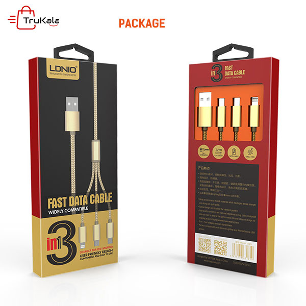کابل تبدیل USB به MicroUSB و لایتنینگ الدینیو مدل LC85 3 In 1