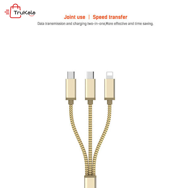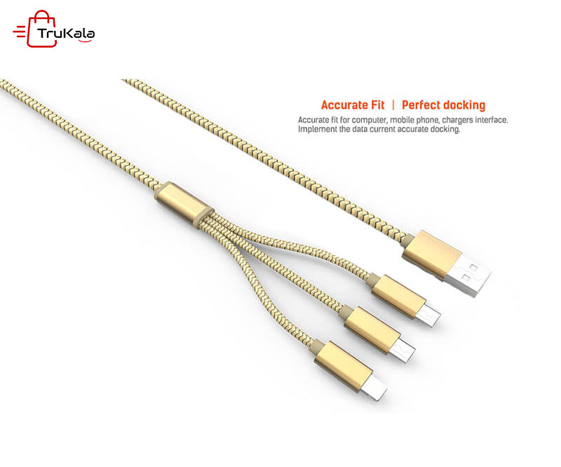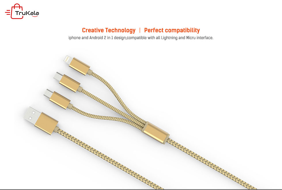کابل تبدیل USB به MicroUSB و لایتنینگ الدینیو با طول 1.2 متری و 3 رابطی که دارد همزمان می تواند به سه گوشی متصل شود و کار را برای شما آسان تر کند. این کابل دارای دو رابط میکرو و یک رابط لایتنینگ (آیفون) می باشد. جنس بدنه ی کابل از PVC ساخته شده است که در مقابل سایش و پارگی مقاومت می کند. این کابل همزمان می تواند در انتقال 3 رابط شرکت داشته باشد و در زمان شما صرفه جویی کند.