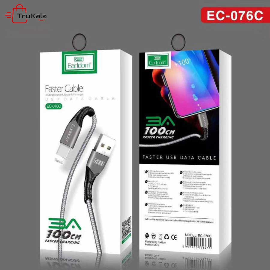 کابل شارژر تایپ سی ایرلدام مدل EC-076C محصول شرکت ایرلدام (Eraldom) می باشد. شرکت ایرلدام یکی از بهترین شرکت های تولید کننده لوازم جانبی و قطعات گوشی می باشد. این کابل 1 متر طول دارد و رابط آن تایپ سی (type C) می باشد. پوشش این کابل از پلاستیک TPE به هم بافته شده با روکش کنف ساخته شده است که دارای خاصیت مقاوم در برابر سایش بوده و ایمنی و قابلیت اطمینان کابل شارژ را تضمین می کند. این کابل در برابر تاب خوردگی و گره خوردگی هم مقاوم بسیار بالایی دارد. این کابل هم برای شارژ و هم برای انتقال داده مناسب است. در این کابل شارژ و انتقال داده به صورت همزمان انجام میگیرد. این کابل دارای استاندارد ایمنی و سلامت محصول CE نیز می باشد. انتقال داده در این کابل از USB 2.0 پشتیبانی می کند. این کابل حداکثر 3 آمپر جریان ورودی را تحمل می کند.