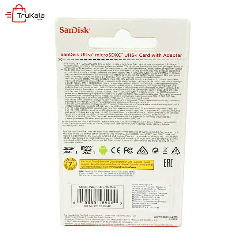 کارت حافظه سن دیسک 64 گیگابایت ساخت برند معتبر سن دیسک (San Disk) می باشد. این کارت حافظه با فضای ذخیره سازی مناسب جهت نگهداری از اطلاعات، تصاویر و فایل های شخصی مانند فیلم، عکس، موسیقی و … ساخته شده است. در این کارت حافظه سرعت خواندن اطلاعات تا حداکثر 100 مگابایت بر ثانیه رسیده، این در حالی است که امکان پشتیبانی از فرمت Ultra HD 4K برای ذخیره و ضبط ویدئو را در سریع ترین زمان ممکن جهت ارائه به کاربر خواهد داشت. این کارت حافظه براساس استانداردهای ایمنی و سلامت ساخته شده و در برابر آسیب هایی مانند ضربه و شوک، رطوبت و اشعه ایکس مقاومت بالایی از خود نشان می دهد تا اطلاعات ذخیره شده کاربر به خطر نیفتاده و دچار هیچ مشکلی نگردد. این کارت حافظه در برابر مغناطیس و دما های نا متعارف نیز مقاومت خود را نشان داده است.