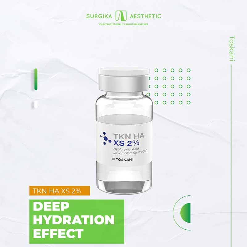 همچنین شایان ذکر است که هیالوروونیک اسید موجود در کوکتل توسکانی اورجینال TOSKANI TKN HA XS 2% یکی از قوی‌ترین ماده جذب‌ کننده رطوبت و مغذی برای پوست میباشد که در بهبود زخم و خارش و ترک نیز موثر می‌باشد