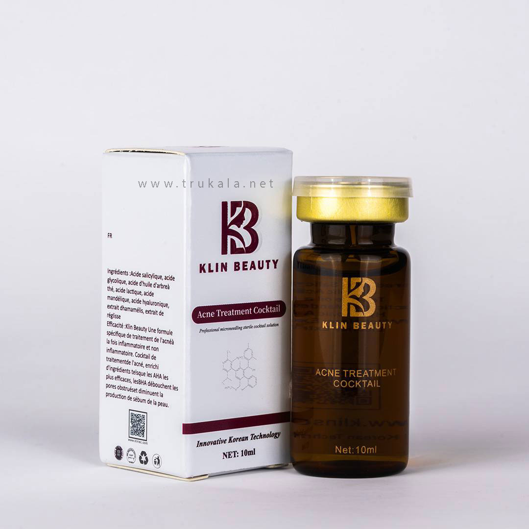 کوکتل ضد جوش و آکنه کلین بیوتی غنی از انواع پروتئینها، ویتامینها و دیگر مواد معدنی و مفید برای پوست صورت و بدن است. با نفوذ عمقی به پوست، موجب جوانسازی و کلاژنسازی میشود.