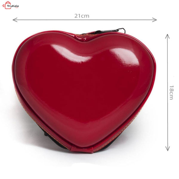 کیف لوازم آرایش مدل قلب متوسط شکل ظاهری محصول به شکل قلب بوده و درب آن به وسیله زیپ باز و بسته میشود. مناسب برای استفاده در سفر و استخر است. دارای محفظه توری درون کیف برای جلوگیری از جابجایی لوازم داخل کیف دارد. دارای بند کوتاه دور دست است.