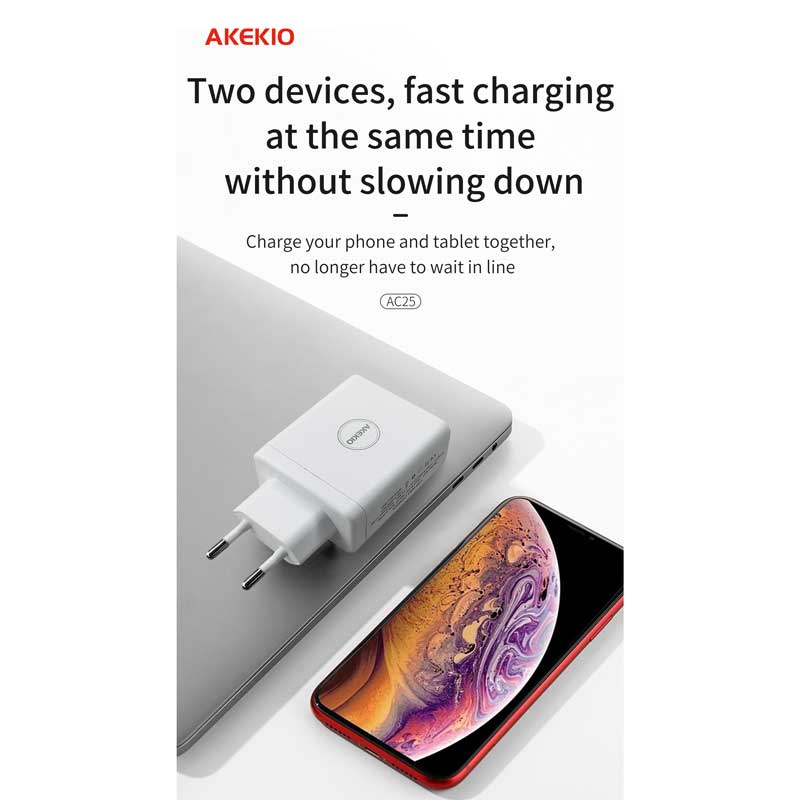 شارژر دیواری آککیو مدل AC25 ساخته شده و طراحی شده توسط برند آککیو می باشد. این برند تولید کننده محصولات لوازم جانبی می باشد.