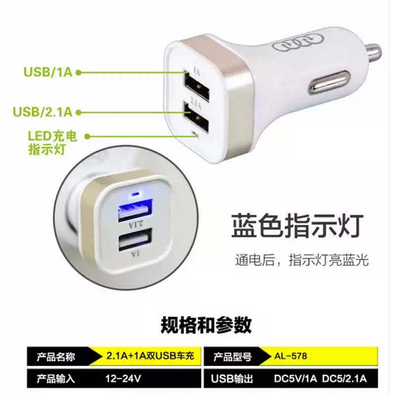 شارژر فندکی آیوولایک مدل 578 دارای دو درگاه برای شارژ دستگاه های شما می باشد. با این شارژر فندکی شما می توانید همزمان دو تا از دستگاه هایتان را به صورت فست شارژ کنید. شما می توانید از درگاه های 1 آمپری و 2 آمپری بهره ببرید. این شارژر با تمامی دستگاه های شما سازگار می باشد. شارژر فندکی آیولایک از مواد با کیفیت و مقاوم و با دوام ABS ساخته شده است. طراحی این شارژر بسیار شیک و با کیفیت است. این شارژر هنگامی که در جایگاه فندکی ماشین قرار می گیرد، یک سوم آن بیرون خواهد بود. این شارژر دارای نور ال ای دی آبی در داخل شارژر می باشد. ولتاژ ورودی این فندک 12 تا 24 ولت می باشد. این شارژر می تواند ولتاژ خروجی 5 ولت در دو جریان متفاوت داشته باشد.