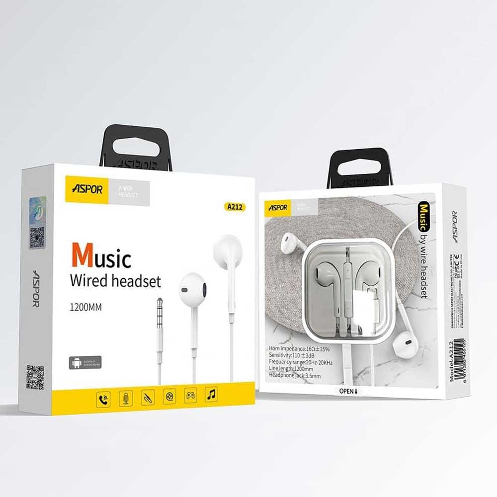 هندزفری آسپور مدل A212 ساخته شده و طراحی شده توسط برند آسپور می باشد. برند آسپور یکی از با کیفیت ترین و معتبر ترین برند های تولید لوازم جانبی گوشی می باشد. اتصال سیمی در این هندزفری بسیار با کیفیت است و دیگر نگران قطعی صدا در گوش های این هندزفری نمی باشید. باس های قوی در این هندزفری باعث شده است موسیقی بسیار لذت بخشی را تجربه کنید.