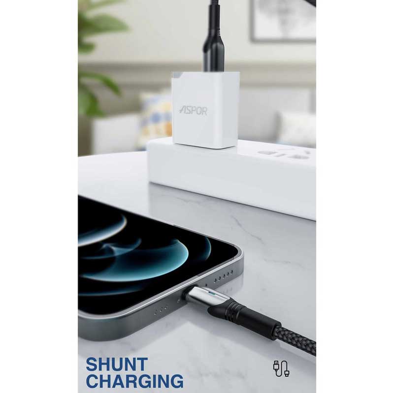 کابل شارژر آسپور آیفون مدل AC-09 محصولی از شرکت Aspor است. که یکی از شرکت های با کیفیت در زمینه ی تولید لوازم جانبی گوشی می باشد. این کابل هم برای شارژ فست و هم برای انتقال داده نیز است. این کابل دارای طول 1 متر است که با دیواره ی بافته شده محافظت می شود. با داشتن این جنس دیواره از گره خوردن محصول جلوگیری می شود. این نوع از جنس سیم از پاره شدن کابل جلوگیری می کند. این کابل برای شارژ دستگاه های دارای درگاه آیفون (Lightning) طراحی شده است. این کابل با توان خروجی حداکثر 3 آمپری و ورودی 5 ولتی می تواند دستگاه شما را بدون هیچ مشکلی شارژ کند و در انتقال داده سرعت خوبی داشته باشد.