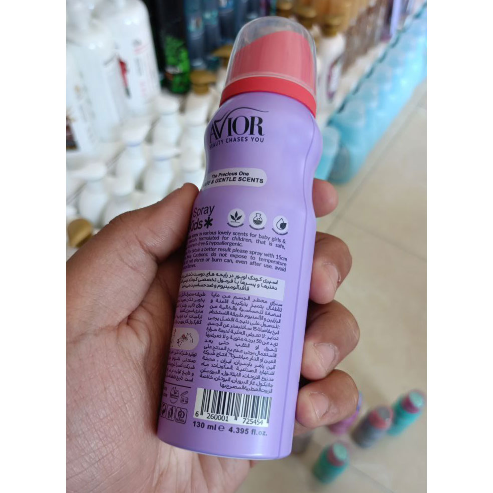 اسپری بچه گانه فروزن آویورحجم 130 میلی لیتر ، با رایحه خنک و شیرین دارای ماندگاری بسیار بالا می باشد. اسپری کودک آویور مدل Frozen فاقد آلومینیوم و پارابن است و هیچگونه حساسیت و آلرژی ایجاد نمی کند. استفاده از اسپری های خوشبو کننده بدن موجب ایجاد حس شادابی و طراوت در کودکان می شود. این اسپری با فرمولاسیون مخصوص کودکان، با جدیدترین اسانسهای روز دنیا در رایحههای خاص اقدام به تولید اسپری های بدن مخصوص کودکان نموده است.