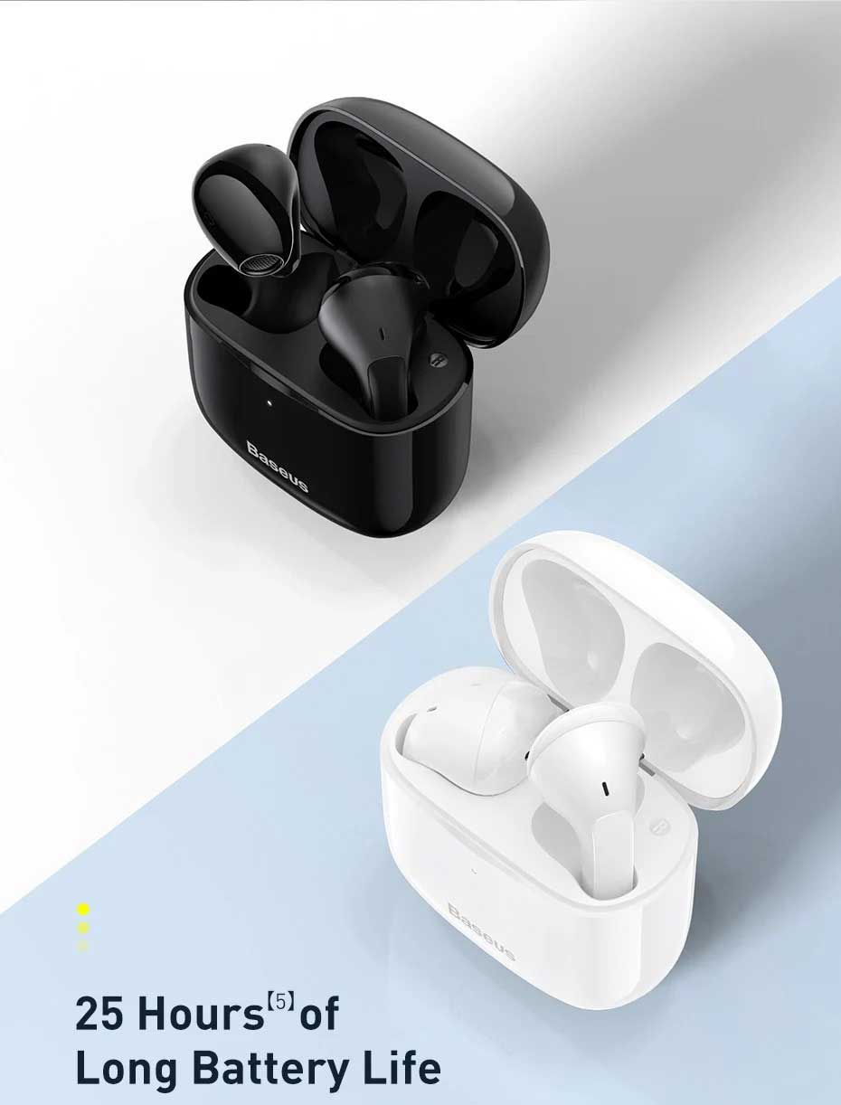 هندزفری بی سیم بیسوس Bowie مدل E3 ساخته شده و طراحی شده توسط شرکت معتبر بیسوس می باشند. شرکت بیسوس یکی از معتبر ترین و با کیفیت ترین شرکت ها در زمینه ارائه لوازم جانبی گوشی می باشد. این هندزفری ها با طراحی زیبای خود به راحتی در داخل گوشی می توانند قرار بگیرند. این هندزفری ها از استاندارد ضد آب IP64 نیز پشتیبانی می کنند. هندزفری های بیسوس می توانند با بلوتوث به دستگاه های شما وصل شوند. مقدار تاخیر در انتقال صدا بسیار پایین است و می توان گفت اصلا تاخیر ندارند. شما می توانید بعد از استفاده این هندزفری ها را با کابل تایپ سی شارژ نمایید. هندزفری ها تا حدود 5 ساعت می توانند موسیقی پخش کنند.